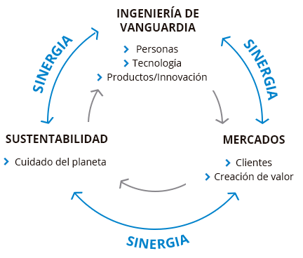 Nuestro concepto y filosofía de trabajo de Pasión por la Mejora es impulsada por tres pilares fundamentales que, haciendo sinergia entre sí, nos conducen hacia un crecimiento sólido y sostenido a través del tiempo. Con el objetivo de liderar cada uno de los mercados en los que participamos, velamos por la generación de valor con foco en el cliente.